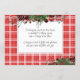 Unikt, klassiskt, trendig, söt och dekorativt företagskort för Helgdag. Cute Glad helg hälsning text och rum som du kan anpassa eller anpassa med ett valfritt meddelande på kortets baksida. Framställd av Burgundy vin röda bär och mörk grönt blad med kransbuketter på en klassröd och vit plaid tartan gingham mönster bakgrund.