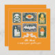 Perfekten korsar inbjudningskort med vintagen av posten frimärke med söt svampstuga hemsökt hus, roligt fladdermus, orange pumpa som gör det så minnesvärt när alla gäster som tar emot inbjudningar från vintage halloween fest. Ett så trevligt sätt att fira den här hallopolssäsongen firande party med din familj med vår orange-pooky-retro mellan inbjudningskort. Enkel anpassningsbar med vilken text du än känner som lämplig med dina halloween fest-vibes!