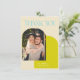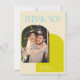 Färgstark och roligt Tack ditt kort i lime chartreuse och ljusblå med ett foto av bruden och brudgummen som ska vara.