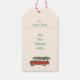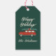 En personlig julklapp märkre med en söt återtro, röd station-vagn och kanot. Det här objektet kan anpassas med ditt eget personliga meddelande eller Julhälsningar. Färg omfattar traditionell jul-färg av grönt, rött och vitt.