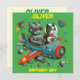 Anpassningsbar Retro Robot och Katt i Rymden Inbjudningar