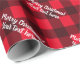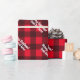 Personlig röd flanelplaithändelsetabuffel kontrollera God jul Wrapping Papprare. Mysiga rött och svart incheckad mönster Helgdag-presentkapslingsrullar med anpassningsbar hälsning och namn.