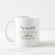 Roligt kaffe eller orange juice mugg för gramps med söt My Underbarare Blessings Kalla mig Grandpa text i ett skrivteckensnitt för ljust grönt färgad i elegant vintage, dekorerat med söt laurel lämna grenar. Med alternativet att anpassa eller anpassa med morfars namn eller barnbarns favoritsmeknamn och att justera texten.