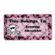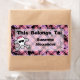 Personlig Rosa och svart Skull med Crossbone-etikett. Perfekt för att märka bokar, mappar och andra personliga tillhörigheter. Lägg till anpassningsbarnas titel och detaljtext. Perfekt för tonåringar, skola, högskola och flickor som tycker om rosa goth. Funkyn lade lilans bakgrund med svarta färgstänk och korsben med rosa båge. Det här tillhöret till..