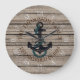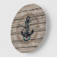 Vintage blå ankare med färgad av tealform på grönt på veckoblekar av vävt trä mönster. Med utrymme att anpassa sig till familjen namn och fastställt datum efter eget val. Perfekt för en rustik trälogg. Titta i sovrummet, hallen, vardagsrummet, köket, grottan eller bergsstugan.