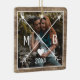 Unik, klassisk, trendig, rustik och dekorativ julprydnad i helgdag, med Glad helg och en Glatt nyårstext, och utrymme att anpassa eller anpassa sig med ett foto och namn (eller namn) som du själv väljer på en rustisk stuga i land som ligger i det västra jordbrukshuset i träd, på åkervallar i stil struktur mönster.