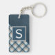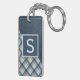 Teartan av contemporary, brun, beige, taupe och mörk av tealblått färgad, plaid, och en bakgrund av ansiktet på läder av struktur mönster. Med utrymme att anpassa eller anpassa sig med ett namn-monogram eller ett första alternativ. Vackra, moderna och coola nyckelkedjor eller resvätebricka för den trendavundsjuka och konstälskande höftledaren, artsy motif älskare.