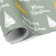Anpassningsbar Sage Grönt White Golden Julgran Wrapping Papper | Modern vacker guld och vit Julgranar. Du kan ändra träd-bilden och all text. Golden digital effekt.