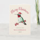 Julkort i anpassningsbar för kute med en ruby-throated hummingbird som bär en julhatt på en beige bakgrund. Lägg bara till ditt namn. Du kan ändra meddelandet, teckensnittet storlekt och färg genom att klicka på "anpassa ytterligare".