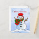 Anpassningsbar snögubbe vid snö och snöflingor helg vykort