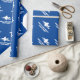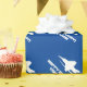 Anpassningsbar som är papper med jet flygplan tryckt i stridande. Personligens presentförpackning med flygplanskonstruktion. Coola Helgdag eller födelsedag för vuxnor och barn. Lägg till ditt eget namn eller humoristiska citat. Blått eller anpassningsbar färg.