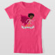 Personlig Girls' T-Shirt med en illustration av en söt, leende afrikansk hjälte-flicka med rosa kostym och liggande. med anpassadets textmall för ditt namn eller meddelande