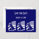 En anpassningsbar Spara vykortet Datum med konst deco brev fram och tillbaka med en söt blå och vit bild av en segelbåt som färdas över vatten. Klicka på Anpassa om du vill ändra typsnitt, storlek och mycket mer, även spara din design för senare.