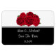 Anpassningsbar spara datum magneter visas med röd ros. Anpassa det här objektet och ändra namn och datum till ditt exempel.