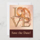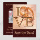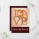 Utformning av kärlek bröllop ringar. Chocolate Brown och Guld. Spara datumfotokorten och anpassa med förlovningens foto. Lätt att göra, Personligt bröllp-kort och spara datumkort. Lägg till lite elegans med guld och brunt bröllop. Har ett guld och brunt färg-system, med ett par guldfärgade bröllop-band som gör "o" i KÄRLEK. Anpassa med din information. Söt och meningsfull utformning av möhippan. Det här objektet är tillgängligt som en fullständig samling i bröllop, inklusive inbjudningar, OSA kort, Spara datumet, magneter, Stickers och Mer!