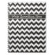 En bärbar snyggt Spiral som du kan anpassa dig till, med en chevron mönster i trenden med Black and White Zigzags. Om du inte vill lägga till någon text i anteckningsboken tar du helt enkelt bort texten och flyttar mönster uppåt tills textbandet försvinner med hjälp av anpassningsknappen. Om du bestämmer dig för att behålla texten kan du låta roligten experimentera med olika typsnitt!