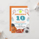 Fira din lilla idrottsmans speciella dag med den här roligten och den färgstarka inbjudan till idrottsmatematisk födelsedagskalender! Med tennisracketar, basketboll, fotboll, baseboll med mera är den här lekande "Speltiden"-designen perfekt för alla sportälskande barn. Anpassa med ditt barns namn, ålder, information om party och OSA. Ett underbart val för pojkar och flickor som kärlek idrottar och vill ha ett energiskt firande på roligten.