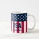 Firar att vara patriotisk genom att börja dagen med din favoritfrukost och USA-flagga. Old glory stars och stripes med USA och ditt namn. Anpassningsbar Stars i Rand Rött vitt blått kaffet Mugg.