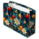 Gör julklapparna extra speciella med den här personligen stora presentväska med en vacker blå blommigt och prydnadsdesign. Perfekt för dem som kärlek är lite eleganta. I den här väskan kombineras festliga poinsetter med skakande ornament i en rik färg palett av blues, golder och . Anpassa den med ett namn och ett hjärtligt meddelande för att få en personlig beröring till presenter. Den här väskan är perfekt för att slå in större gåvor eller många, så att de syns under Julgran. Perfekt för gåva med stil och sofistikering under julhelgen.