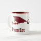 Fantastiskt presenterat mugg för din favoritexamen, med snyggt grafik av ett diplom och ett rött pantarkort. Röd grafisk text läser Klass av och anpassadets röda text läser året och namn i student. Anpassa för dig själv eller din favoritgrad.