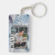 Unik och trendig student-fotonyckelkedja, ramad med snyggt teal blue, lila mauve och grått färgad abstrakt brushstrokes mönster bakgrund. Med utrymme att anpassa eller anpassa med ett foto, namn i student och klassår studenten.