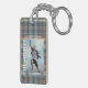 Unik och trendig student-fotonyckelkedja, med snyggt mörk blått, grått, senap gult brun och vit färgad plaid tartan mönster bakgrund. Med utrymme att anpassa eller anpassa med ett foto, namn i student och klassår studenten.