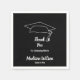 Svartvit napkin säger "Tack för att du firar med oss". Napkin från party kan vara personlig med student namn och studenten. Ett student-lock är överst på kapseln.