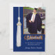 Inbjudan till studentfest av blå och orange anpassningsbar. Lägg till datum, student namn och foto på framsidan av det här Studenten-kortet och anpassa informationen på baksidan. Kort designad av Rycky Creations; vit originalteckning ©ljuskänsliga dockor. Kontakta konstnären om du vill ha ett kort med din egen färg!
