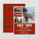 A personligt bröllp sparar datumet med fotoblockdesign med Klan MacNab tartan från Skottland