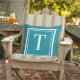Anpassningsbar Teal Blue Square Monogram Initial B Kudde