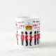 En underbar koronation firande souvenir mugg med Grenadier Guardsmen, bunting och krona som är lätt att ta bort eller anpassa som du vill. Koronationen kommer att ta ställe lördagen den 6 maj 2023. Grenadier Guards är en av de högsta inlandsregimerna i den brittiska armén. Snabb och mobil specialiserar de sig på Light Role Infantry-operationer, som ofta använder lätt fordon, t.ex. fyrhjulingar för att komma runt. De är redo att sätta in var som helst i världen med kort varsel.