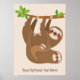 Anpassningsbar Text & Färg Cute Sloth Poster