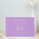 Anpassningsbar Text Personlig Brev till eleganten Bläddra i "Brev till Bride". En vacker keepsaké i enkel, lavender, lilac, lätt lila och vit med elegant, elegant stiliserad blocktext och manuskalligrafi. Anpassa genom att lägga till namn och datum för möhippan. Det finns utrymme längst bak i bok att lägga till ett eget citat eller säga att bruden ska vara. Perfekt som gåva från brudtärnorna, eller till en möhippa gäst bok. Gör också en underbar skrapbok till bruden för att alltid uppskatta.