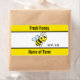 Ett glatt bin står i centrum för märkningen av honung burk. Du kan redigera texten för att skapa anpassningsbarna. I visningen står det "Fresh Honung WT. 16 OZ. Namn i Farm. Texten är svart.
