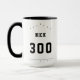 Personlig bowling mugg med anpassningsbar (t.ex. namn och personligt högbetyg) i ett fet stil-teckensnitt för sport. Exempel på text som visas: Nick 300 Du kan anpassa färgen på punkter, pilar och rutnätslinje. Standard: svart.