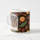 Anpassningsbar Text Photo Winter Botanical Mönster Giant Coffee Mugg. Stam rustik vattenfärg mönster på pinekoner, gräs sprickor, orange, kanel, bär och stjärnanis. Anpassa mallen för att anpassa texten med ditt eget meddelande och ladda upp fotot. © Kimbelled, LLC