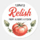 Vintage Stil, redigerbart Homemade Tomato Relish canning Stickers med en vattenfärgad tomatillustration. Gör egna kanningsetiketter för dina favoritrecept på hemmabruk. Till använda på ditt kontrolllock eller på sidan av burk. Perfekt för konserver, homemerade gåvor eller som köksmonterare. Kontrollera matchningssamlingen för SAMORDNINGSOBJEKT. Originalteckningar efter PUPSIKU STUDIO. 100 % unika produkter.