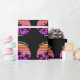 Coola shock rosa och svart handflatan träd födelsedag som är pappert för ett party på en tropiska ö. Det är vackert handflatan träd framför en söt strandsolnedgång. Perfektens anpassningsbar är en skål för en strandflicka.