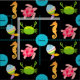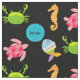 Ska kärlek för tyg görade randig ungar, särdrag en svart bakgrund med havsvarelser däribland en rosa havssköldpadda, fisken, den orange seahorsen, och den gröna krabban såväl som blått cirklar dig kan skräddarsy med ett namn.