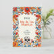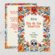 "Vibrant Traditions - Día de los Muertos Card" har en dekorerad skalle och sjudande blommönster med anpassade, inklusive "Feliz Día de los Muertos" lÀngst upp och "from [custom name]" i grund, med plats pÄ baksidan för ett anpassningsbar och samma blommigt som framsidan.