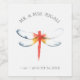 På etiketterna i anpassningsbar flaska finns en röd dragonfly med vattenfärg. Använda mallens fält för att DIY information om personligen av anpassningsbarna. Ett lysande val för bröllop och bröllop. Om du vill se hela den tematiska papperskorgen i bröllop och mer användbara bröllopsfavoriter i bulk går du till www.zazzle.com/dotellabelle Unik konst och design av Victoria Grigaliunas från Do Berätta A Belle