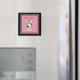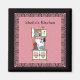 Anpassa den här magneten med ditt namn eller valfri text. Detta är ett vintage bild i ett gammaldags kök mot en texturerad rosa och svart bakgrund. Den har en gammal spis, kaffekanna och olika redskap. Se min butik för andra produkter med den här designen.