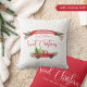 Lägg till er egen text både framifrån och bakåt och gör detta vackra festliga dekorativ kudde till ert eget! Utformning med ett vackert vattenfärgband med grönt och holly samt röd vintage lastbil med Julgranar och candy cane i baksidan, med ett meddelande som säger "Välkommen till - din familj namn-Sweet-jul". Modern skriven skrift "Sweet jul"-fras i röd ton. Tillbaka i rött med frasen "Söt jul" i vitt och din egen text nedan. Underbar, unik anpassningsbar-helgdag för att uppskatta! Samling med samordning av tillgängliga produkter.
