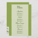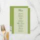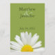Den här mottagningsmenyn i personligt bröllp är ett måste om du tänker servera middag på din mottagning. Det här bröllop-menykortet innehåller mörk grönt text på en grönt med stor vit daisy på baksidan. Vi erbjuder även den här bröllop-menyn i en smal version. Se till att du checkar ut anpassningsbar bord, bröllopsfavärden och andra bror i White Daisy Bröllop Collection.