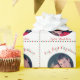 Anpassningsbar, vit, röd och grönt vår första pappra julomslutning med anpassadets foto och text - du kan lägga till foto, namn och år