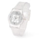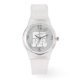 Anpassadets vita ideogram över Råtta på en söt "papper" illustration som bakgrund. Du kan enkelt ändra år och färg i ideogrammet genom att klicka på anpassningsknappen. Utformning på Silicone Strap Clear watch med unga stil-nummer. Perfekt för kinesiska nyåret Råtta eller födelsedagen (människor födda i Råtta år).