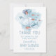 Tack för att du har kort för gästerna.. anpassningsbar. Utformningen av kute i blått och vitt, helt redigerbar med ett meddelande (tack för att du duschar baby med kärlek i exemplet), mamma till namn och party.