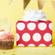 Röd och vit polka punkt mönster. Anpassa den här designen genom att ändra den röda bakgrunden färg. Polka dots är en sömlös mönsterbild som också kan anpassas.