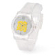Anpassadets gult av Tupp på pappra illustrationer som bakgrund. Du kan enkelt ändra färg i ideogrammet genom att klicka på anpassningsknappen. Utformning på Silicone Strap Clear watch med unga stil-nummer. Perfekt för kinesiska nyåret Tupp eller födelsedagen (människor födda i Tupp år).