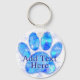 Tecknad hund pawprint i blått. Watercolor stil art. Anpassningsbar-nyckelkedjor. Redigera text som du vill anpassa. För hem och företag som t.ex. butiker för husdjursaffärer, hund och hundvalkare. Gift-idé för hundälskare.
